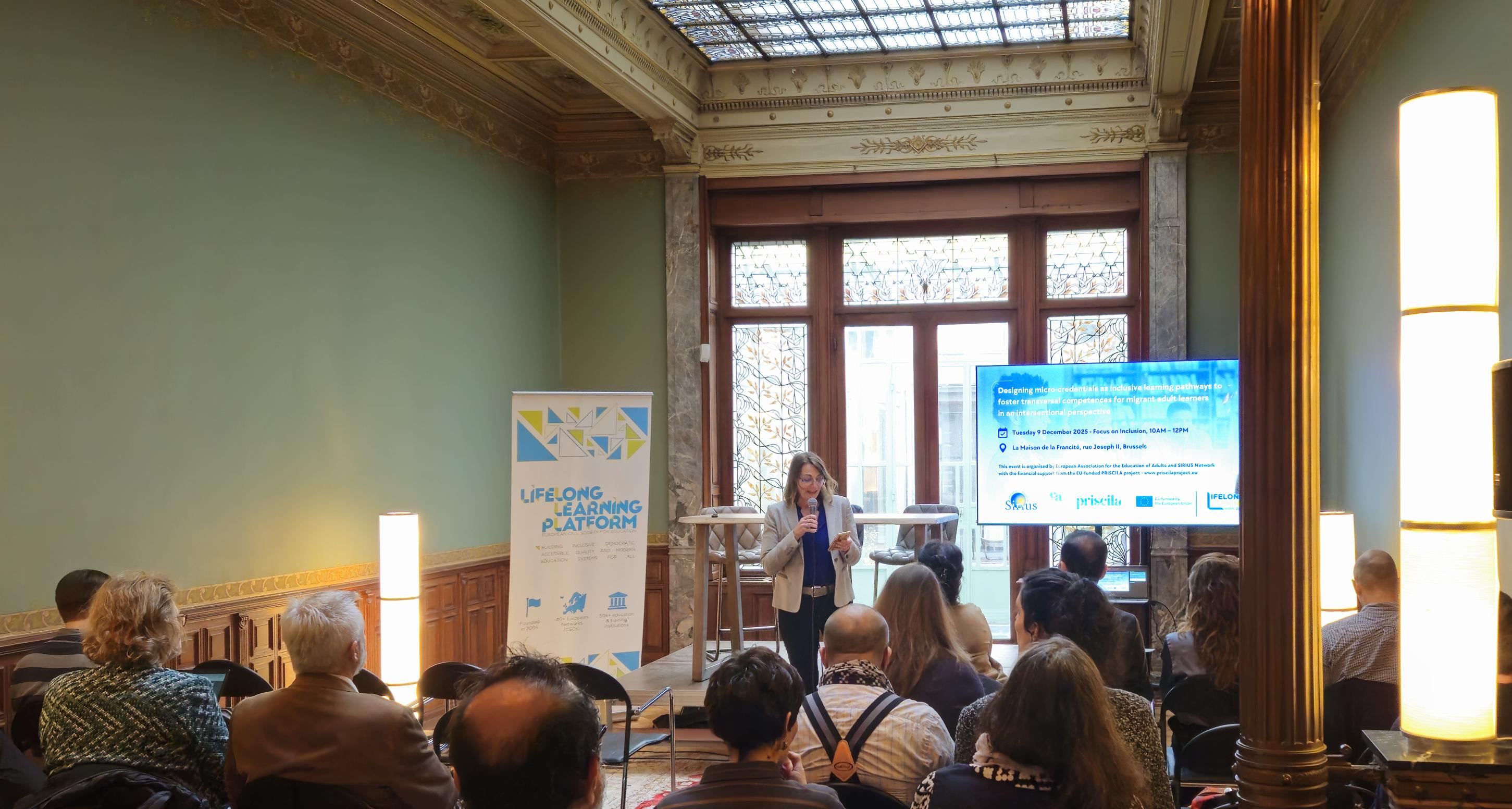 On 9 December, more than 40 experts in education, social innovation and migration policy, gathered in Brussels, for the first event of the Lifelong Learning Week 2025, ‘’Designing micro-credentials as inclusive learning pathways to foster transversal competences for migrant adult learners in an intersectional perspective’’ to explore and discuss the core question of how we can co-design accessible, inclusive and flexible learning pathways, also as micro-credential for non-formal education, to foster key competences for learners with migration background.